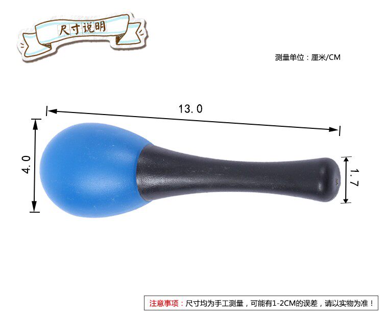 A red plastic sand hammer, a yellow plastic sand hammer, a blue plastic sand hammer, a green plastic sand hammer, a pink plastic sand hammer, a red plastic sand hammer, a pair of yellow plastic sand hammers, a pair of blue plastic sand hammers