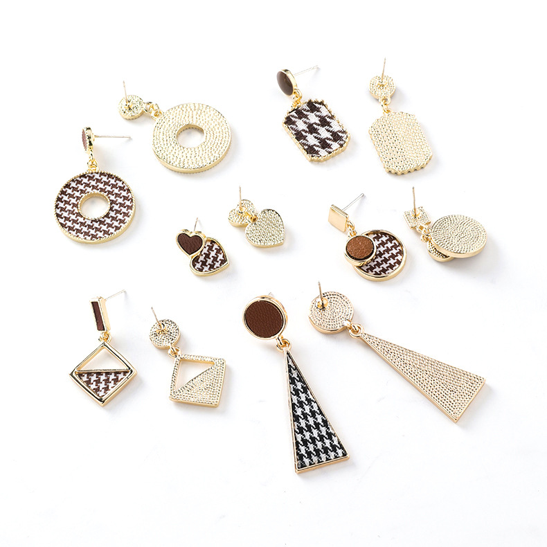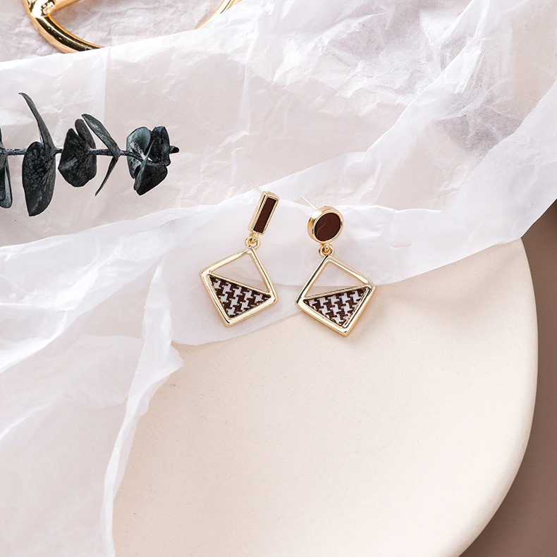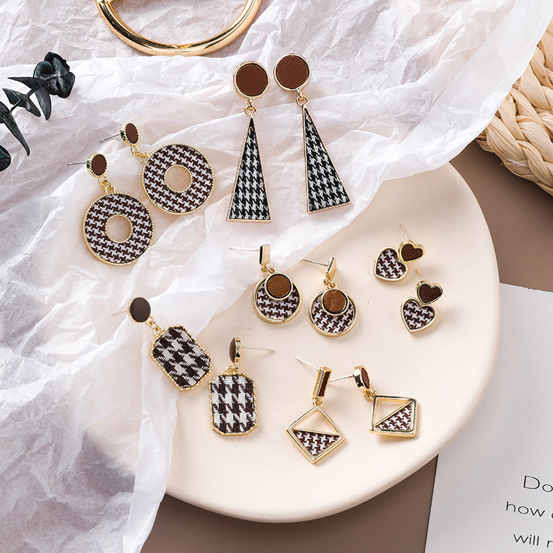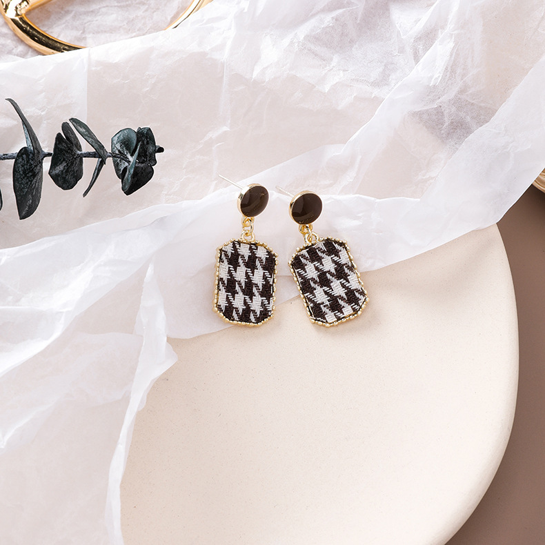 925 silver needles autumn and winter plaid love ear needles ladies temperament rectangular geometric earrings retro houndstooth plaid earrings