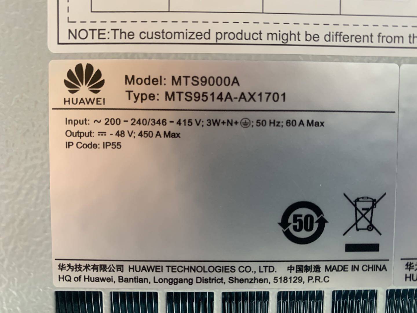 Huawei MTS9000A Outdoor Integrated Communication Power Air Conditioning Cabinet MTS9514A-AX1701 Outdoor Cabinet