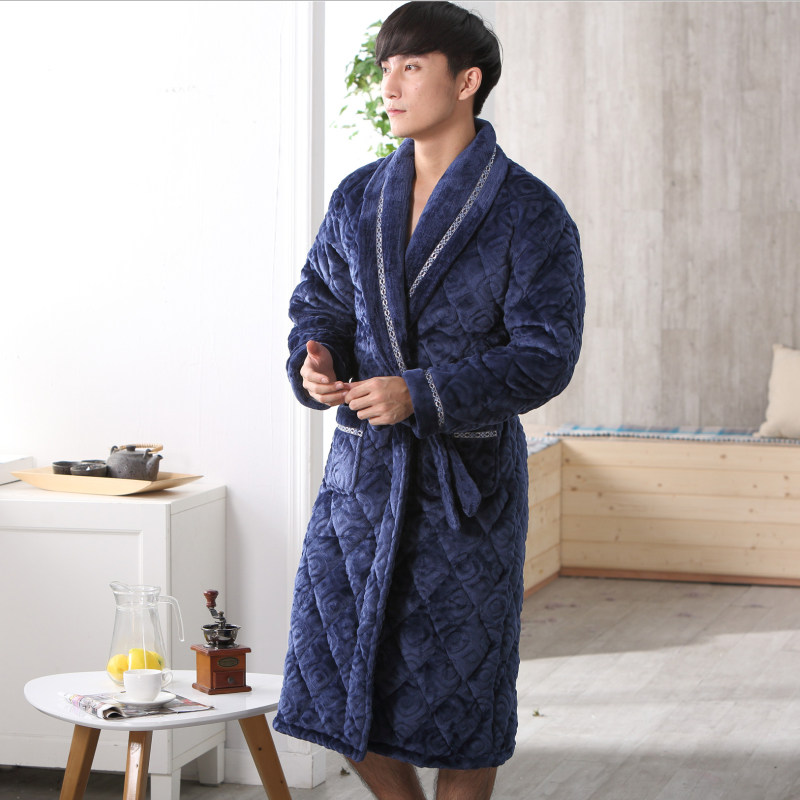 Triple layer thickened coral suede clip cotton sleepwear male winter warm bathrobe woman lengthened with cotton plus suede mom pyjamas