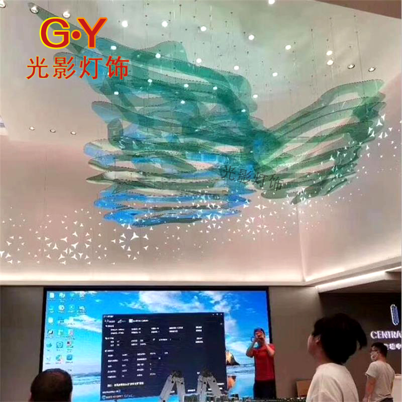 Custom art color acrylic sheet chandeliers Large shopping mall patio decorative lights sample house display center sand table engineering lighting