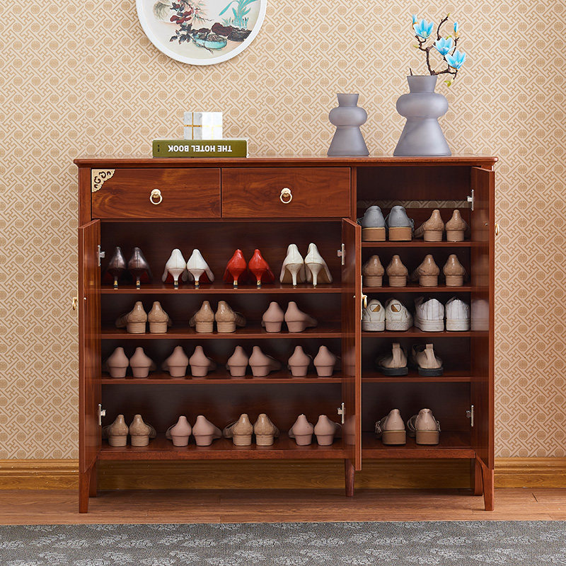 New Chinese shoe cabinet home door large-capacity storage cabinet storage cabinet entry door entrance cabinet solid wood frame hall cabinet