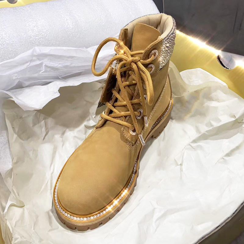 Spot JC rhinestone joint kick bad rhubarb boots waterproof British Martin boots plus velvet snow boots outdoor tooling boots