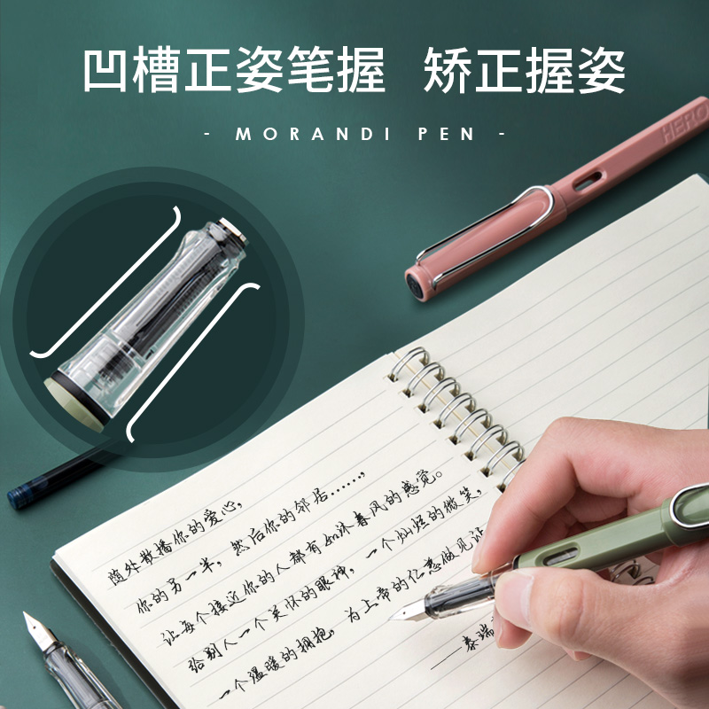 Hero brand pen 359 men's high-grade high-value ink sac can replace the student-specific boys primary school students third grade word practice custom male and female carved words ten brand official flagship store