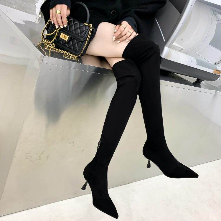 Real Leather Over Knee Boots Woman Long Boots 2020 New Pointed Slim Slim Boot Net Red Skinny Boots Slim heel Elastic Boots