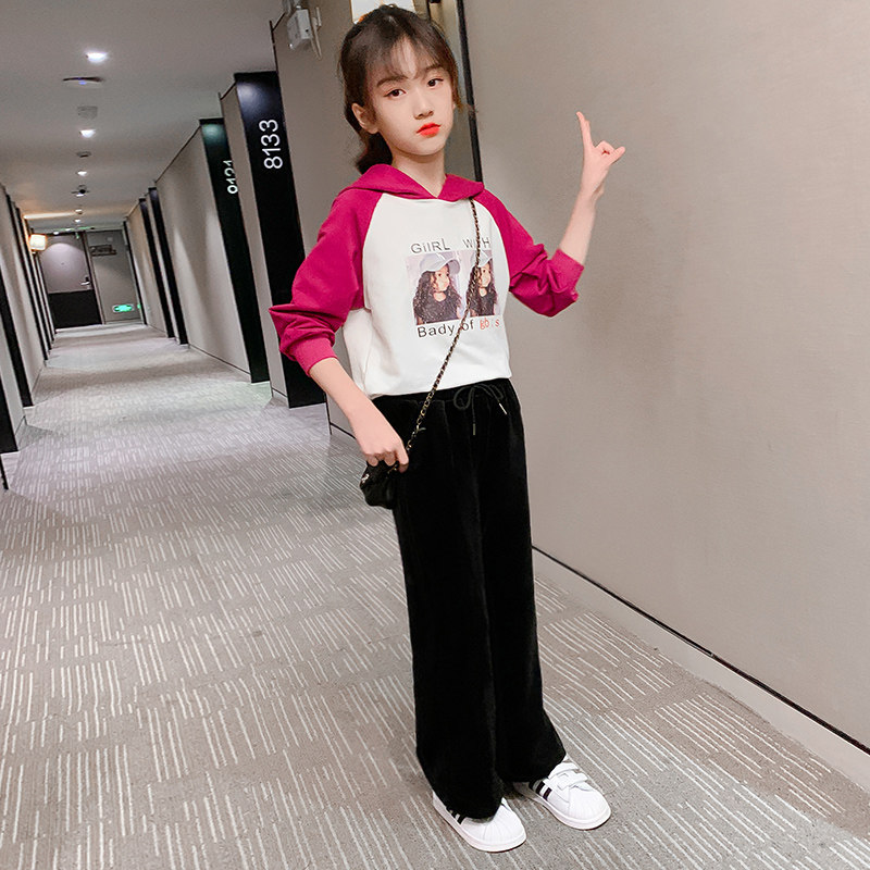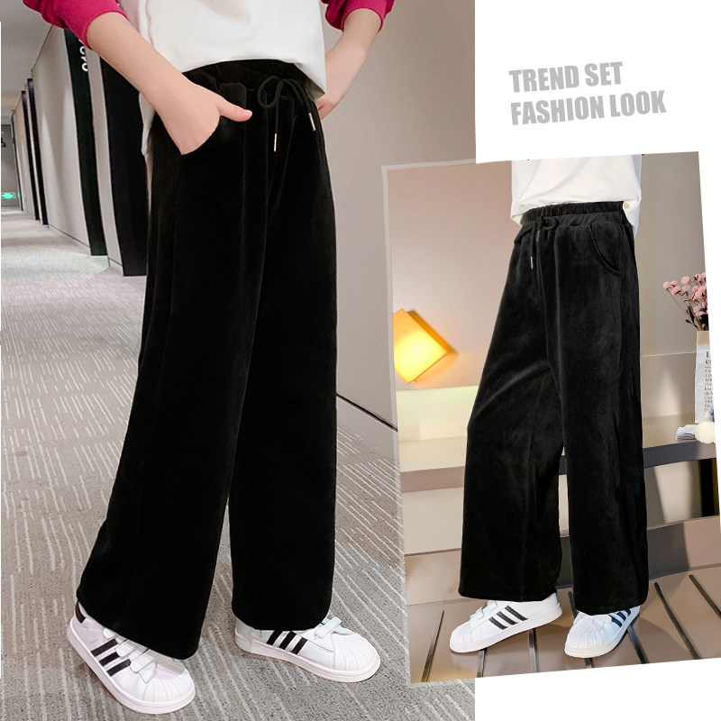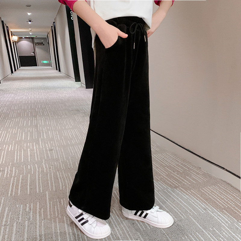 Girls' pants autumn and winter new Korean version of the Western style middle-aged children's loose straight-leg pants velvet trousers plus velvet wide-leg pants