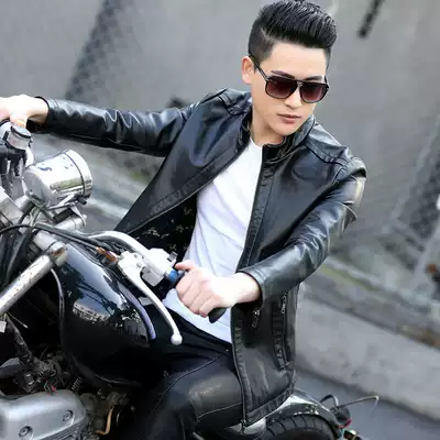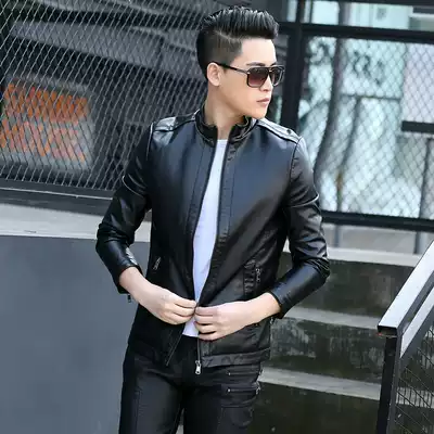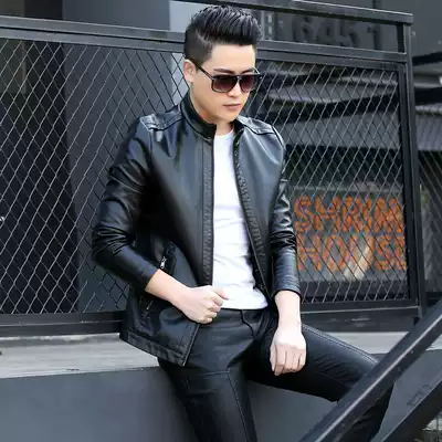 Haining leather leather men's autumn new Korean short slim stand soft leather jacket youth tide casual jacket