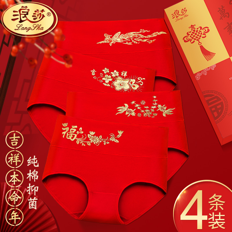 Sura red underpants female Ben life tiger year old tiger high waist lifting hip pure cotton large size mid-waist ladies triangle shorts