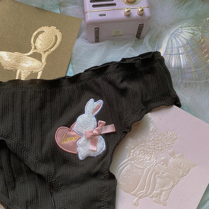 Obediant Rabbit ~ Day Ensemble Cute Plush Briefs Teenage Girl Cotton Lotus Leaf Side Sweetness Soft Cute Wrap Hip Triangle Pants