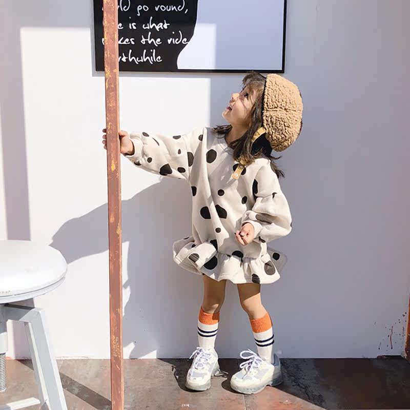 Children's sweatshirt autumn winter girl gush with medium long version Podot necropolis dress Korean version Baby Ocean Lotus Leaf side foreign dress