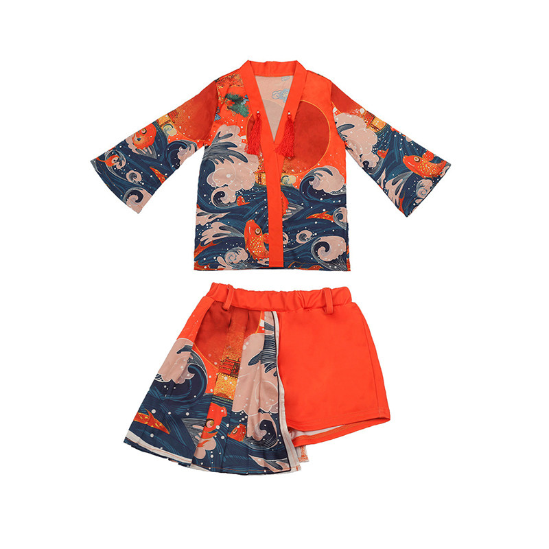 Girls' culottes suit Girls' trousers suit Boys and children's clothing Tops and culottes trousers Girls' vest and belt Boys' vest and belt