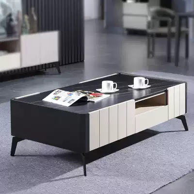 Solid wood TV cabinet American light luxury rock board coffee table TV cabinet combination living room modern simple paint floor cabinet Italian style