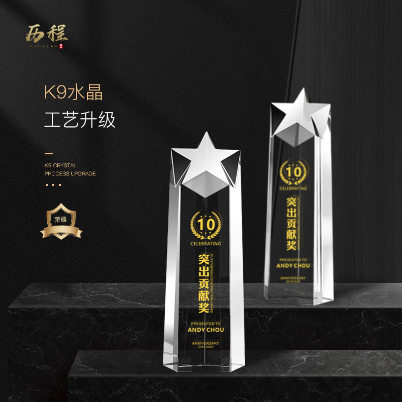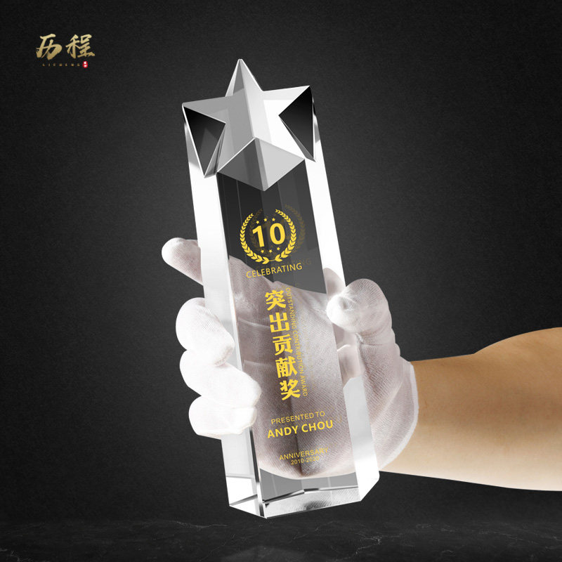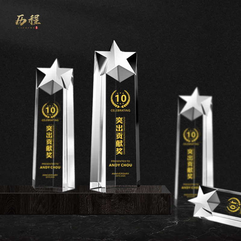 Creative pentagram crystal trophy custom excellent employee award competition champion award commemorative award lettering production