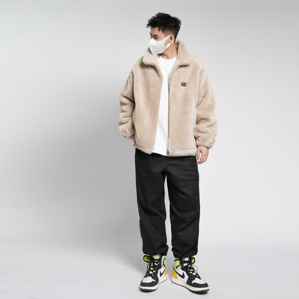 Damp Grain Suede Lamb Wool Jacket Male short Thickened Goat Cut Cashmere Leather Grass Fur Integrated Coat Jacket Loose-Taobao