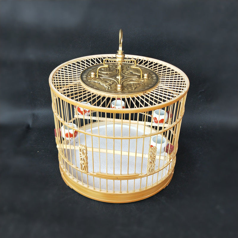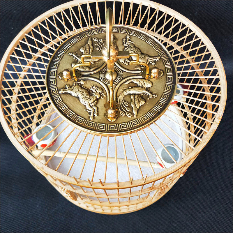 Boutique green leather old bamboo red bird cage round cage bamboo small bird cage engraved shellfish willow warbler embroidered eye semi-finished bird cage