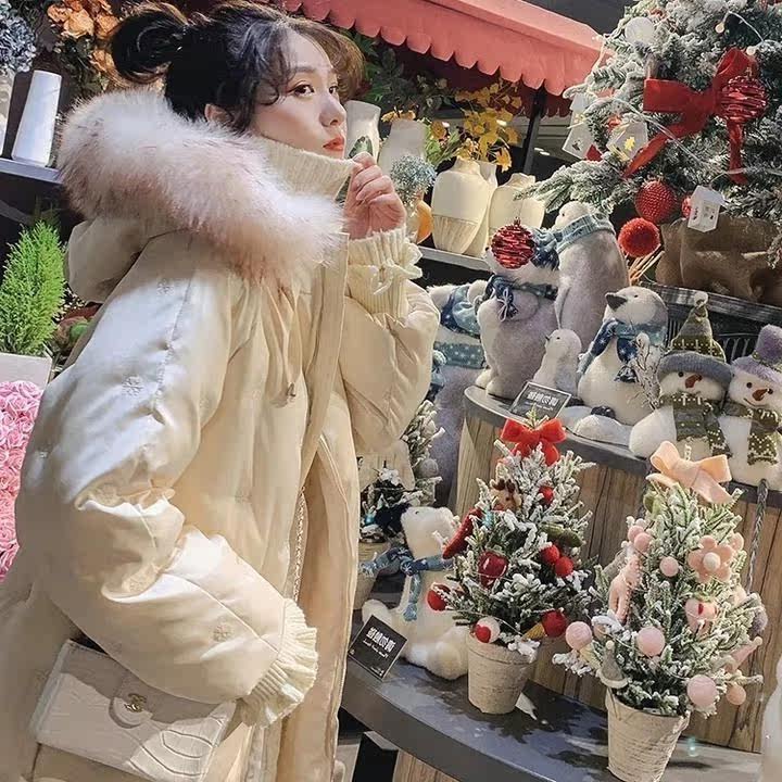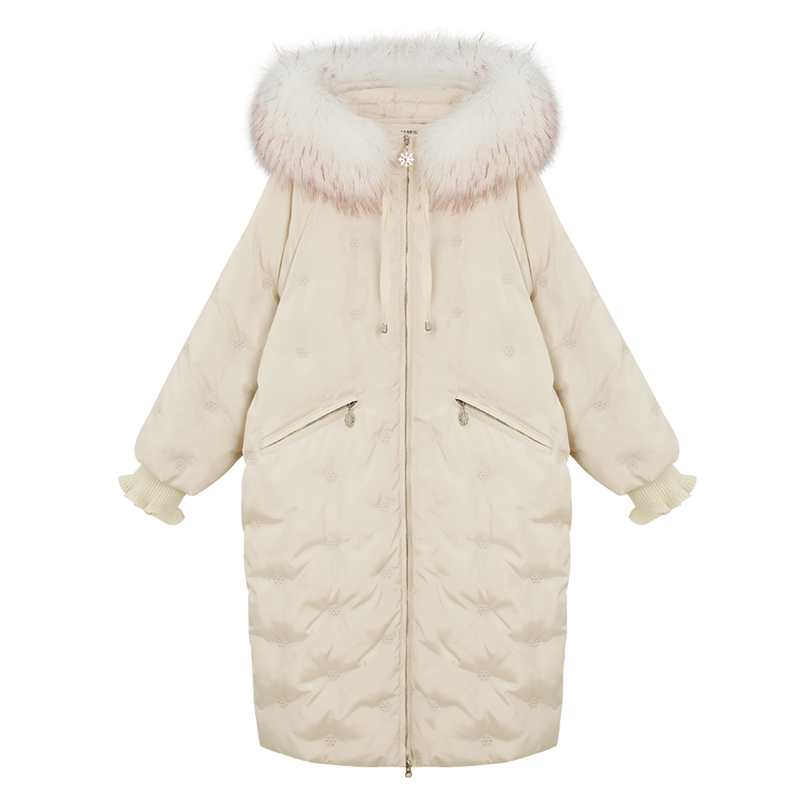 Pregnant women down jacket winter pregnancy 2021 new female long snowflake embroidery thick wool collar coat coat
