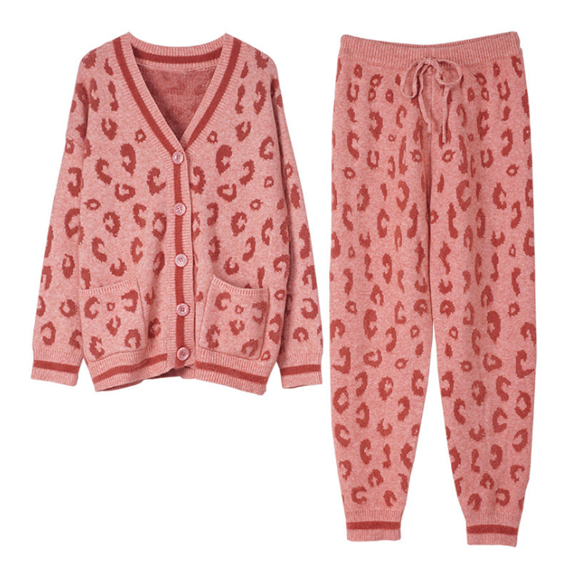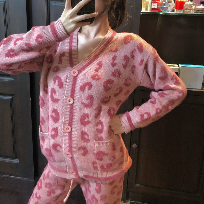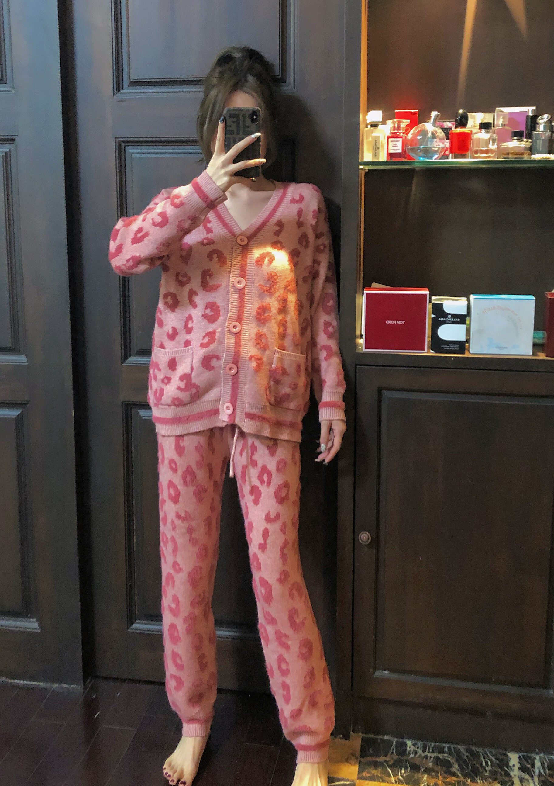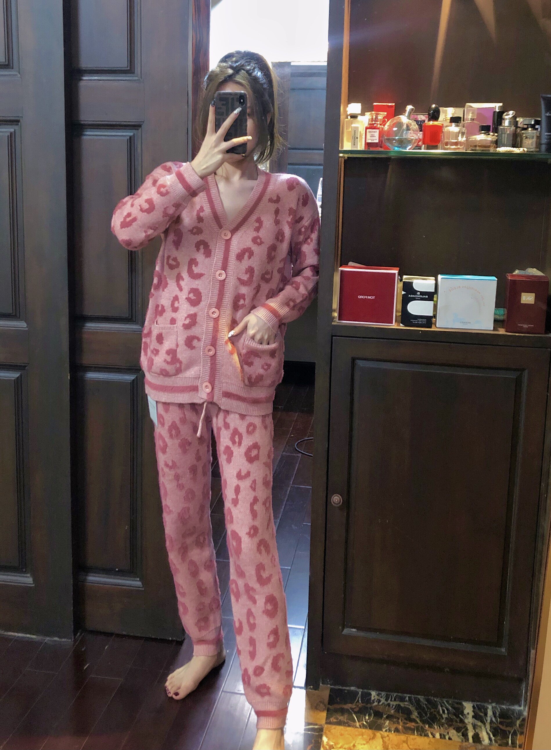 Japanese pajamas female winter BAO WEN powder knitted elastic strength relaxed large code red in suit home suit