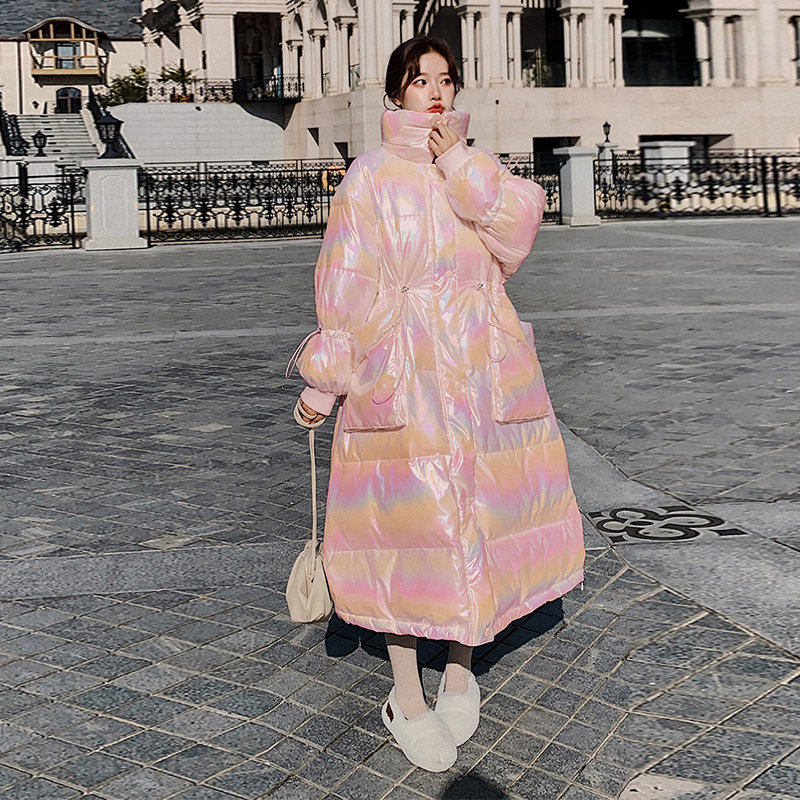 Bright Face Dazzling Laser Bread Plume Cotton Clothing Fairy winter medium long version over knee Waist Version Loose-free cotton Clothing