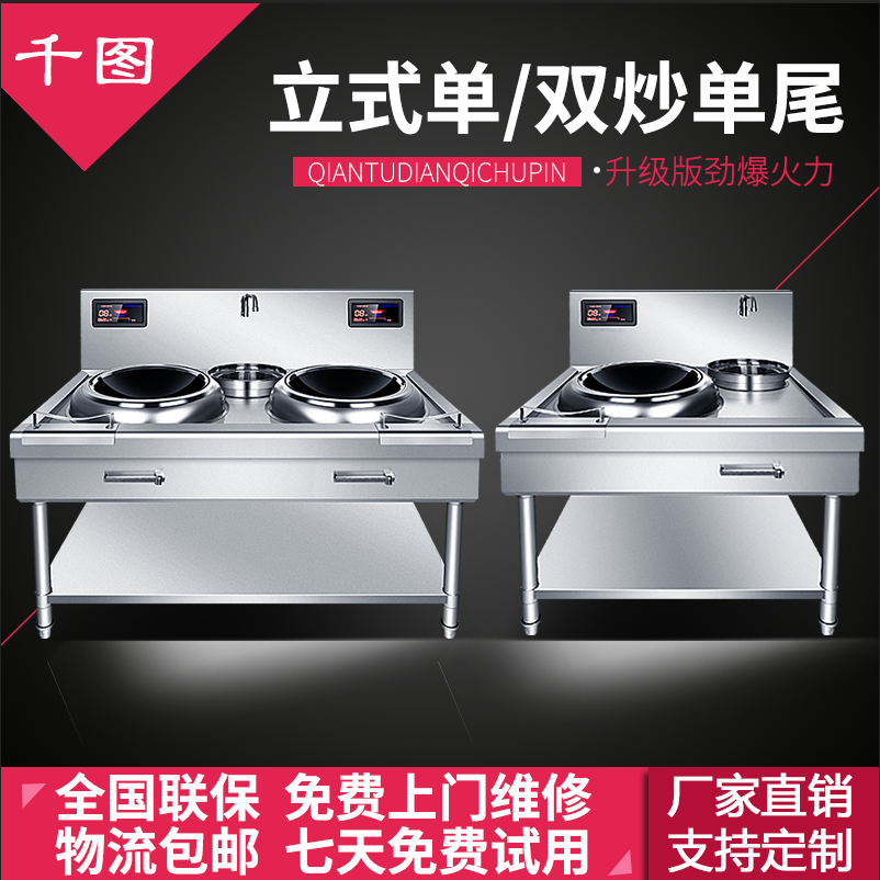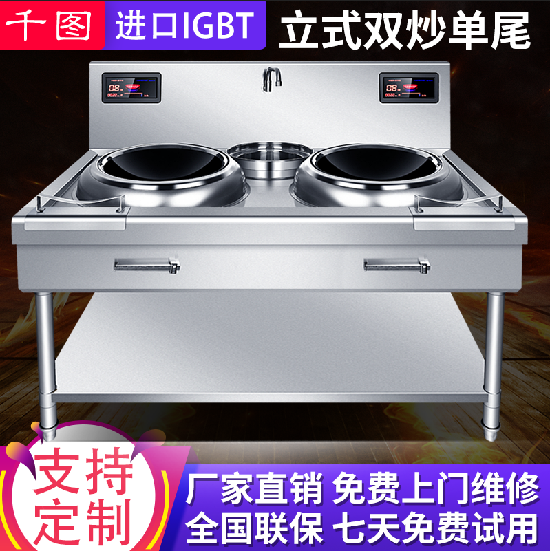 Qiantu commercial high-power double-head electromagnetic fierce fire stove concave surface three-phase electric kitchen equipment 15kw binocular electric frying pan