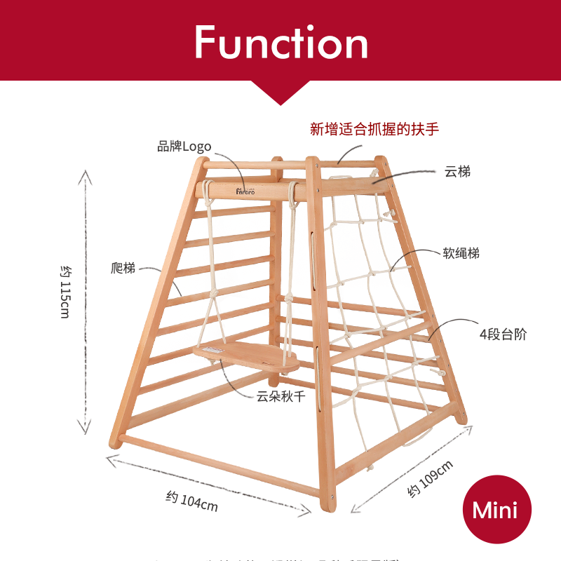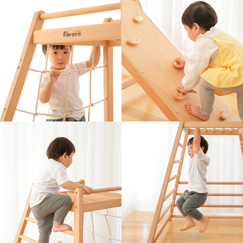 Faroro Mini Small Solid Wood Climbing Frame Children's Indoor Climbing Baby Home Slide and Swing Combination