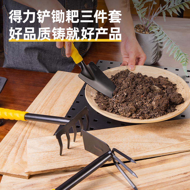 Powerful shovel hoe rake three-piece set thickened gardening shovel potted flower raising succulent planting rape flower plant flower tool set