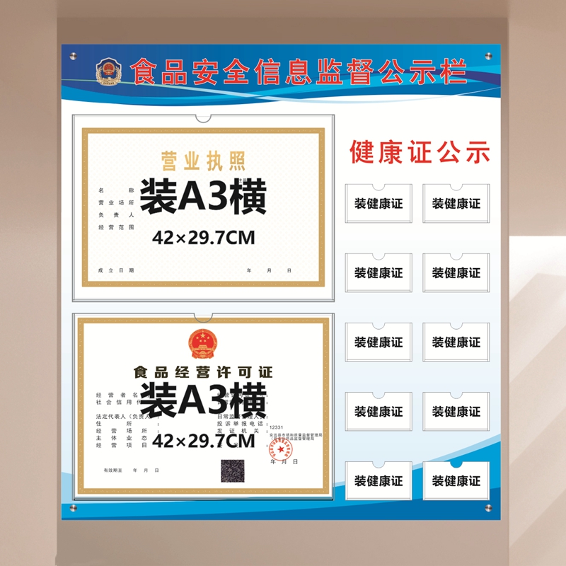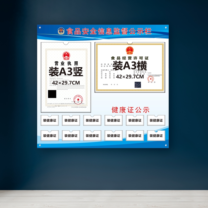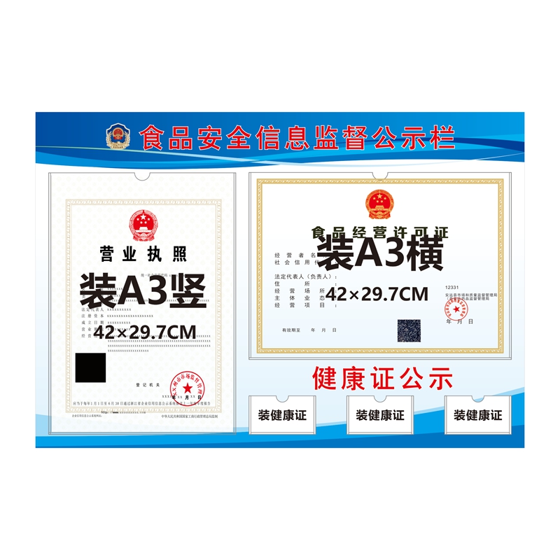 Health Certificate Food Safety Information Public Bulletin Board Publicity Bar Business License Health Supervision Operation Public Display Card Hanging Wall