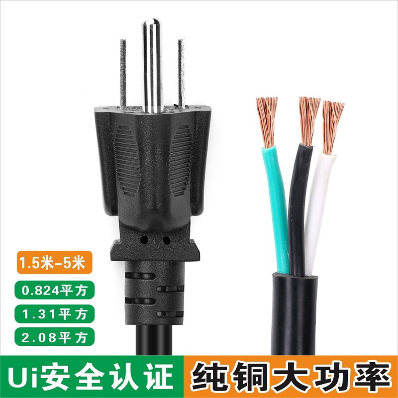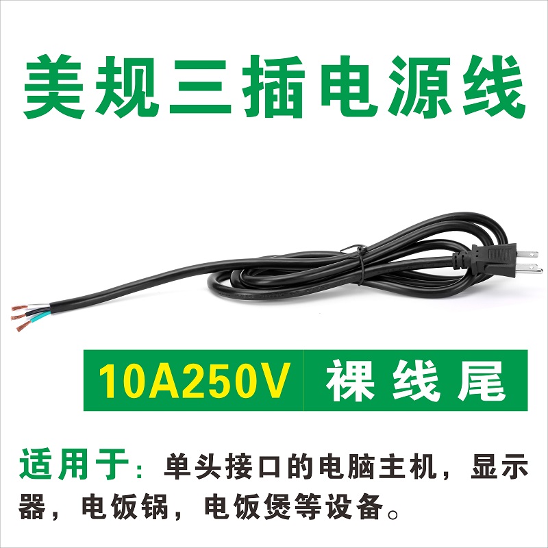 American standard power cord UL certified pure copper 3 core 0 824 1 31 2 08 square 16 18AWG US standard plug wire