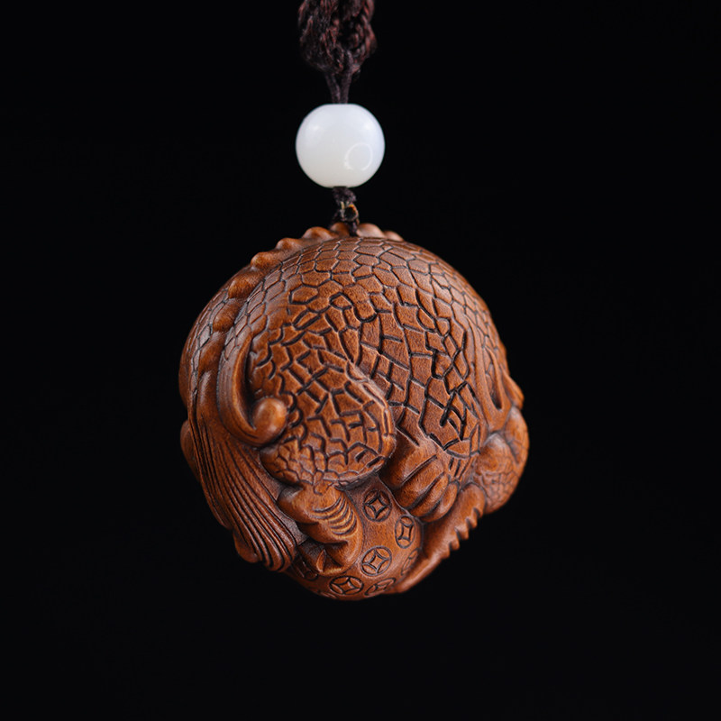 Yellow poplar wood engraving to play sandalwood animal pendant imitation ancient leash handlebar piece small piece of handmade handicraft transfer ball-Taobao