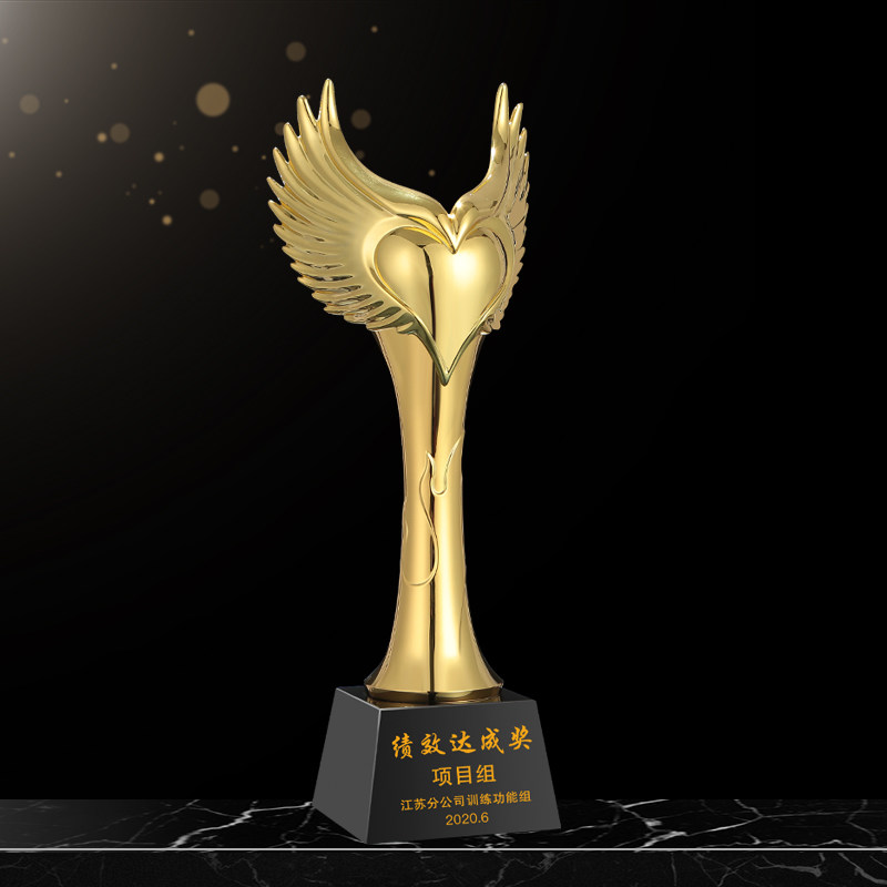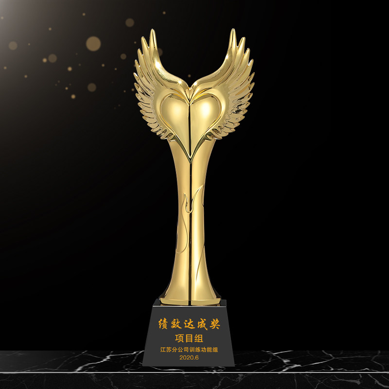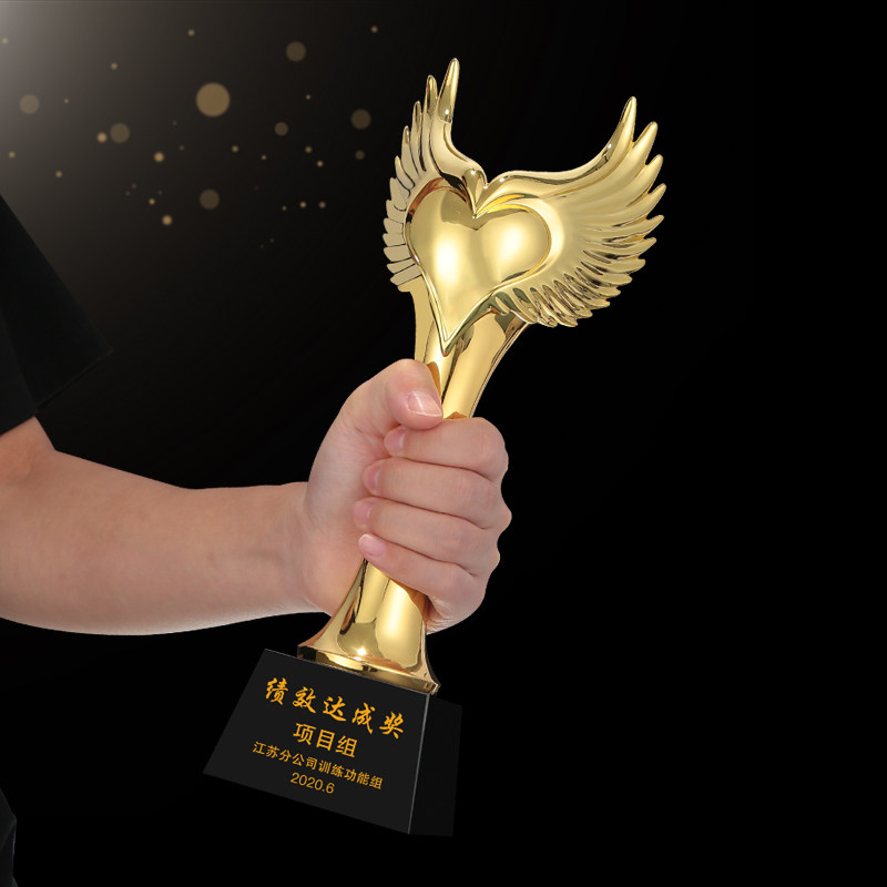 Metal trophy custom creative love wings Resin crystal trophy custom production annual meeting excellent staff lettering
