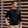 Kuegou men's black sweater men's spring Korean version of the trend personality wheat ear embroidery round neck sweater 9166