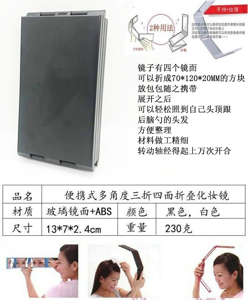 Four-layer folding mirror Black Four-layer folding mirror Pink Four-layer folding mirror Black comb Four-layer folding mirror Black hair clipper Four-layer mirror Black black tooth scissors Black flat scissors Four-layer folding mirror powder