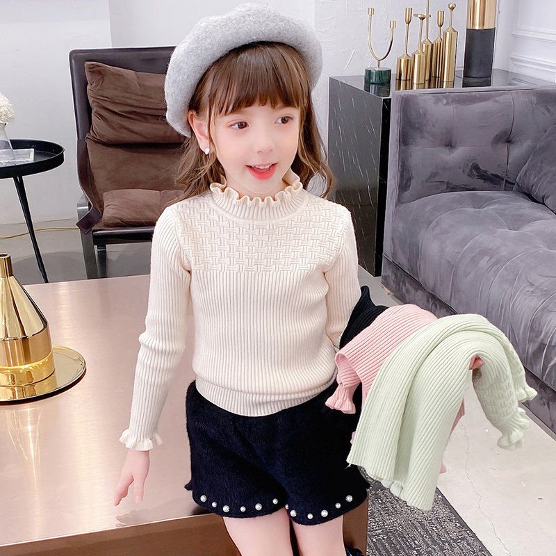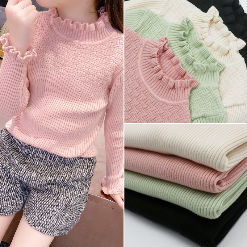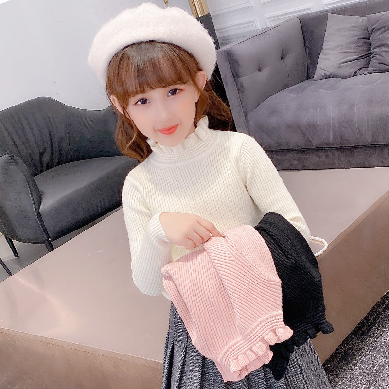 Girl's base sweater autumn and winter coat children's clothing women's big children's winter clothing Foreign Air wooden ear children's knitted base shirt