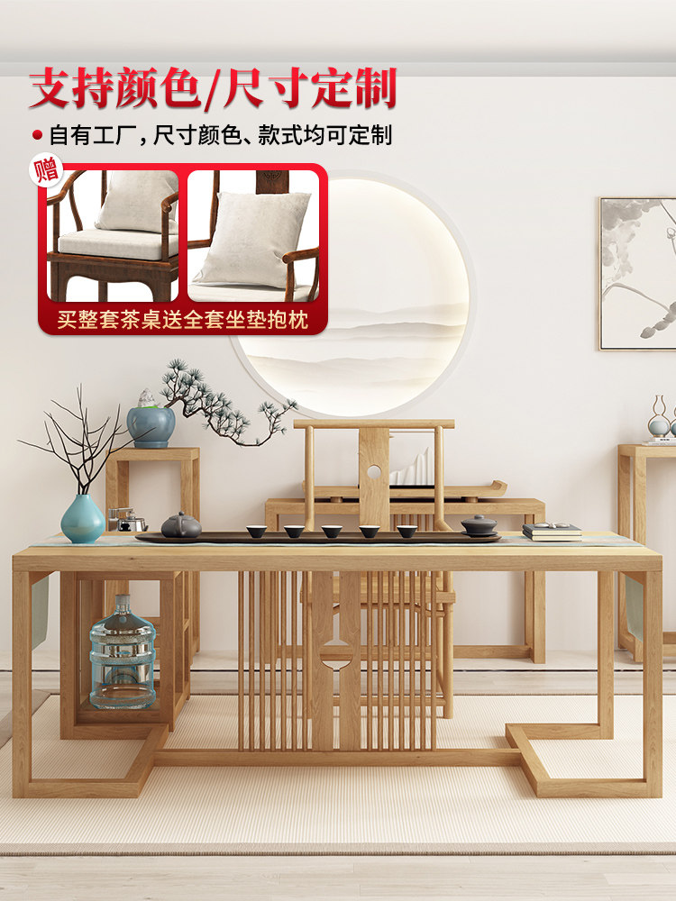 Solid wood tea table and chair combination Tea table table New Chinese living room tea table Household wood tea table Tea set one