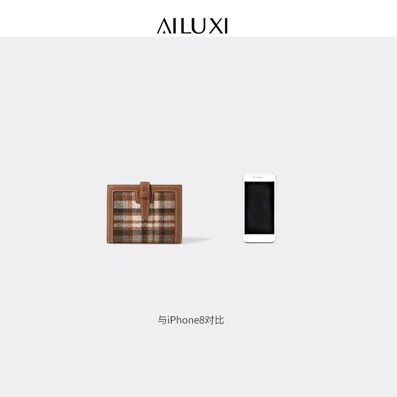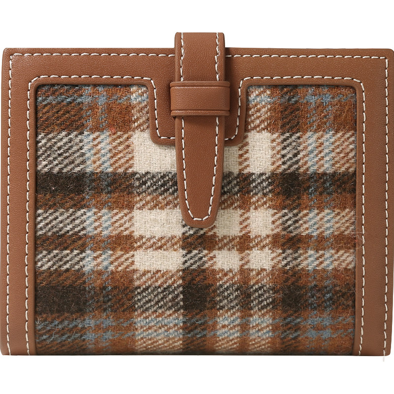 Ailuxi flagship store autumn and winter simple retro wool Chidori plaid wallet women's small ultra-thin coin card bag