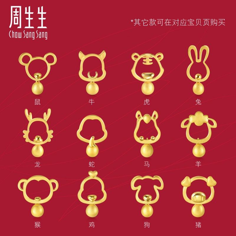 Zhou Sheng Biological Hollowed-out Duozodiac Gold Foot Gold Tiger Pendant Pendant Women Without Necklace 91906P-Taobao