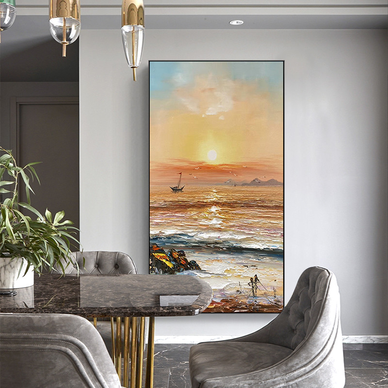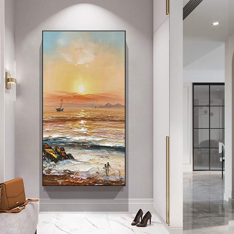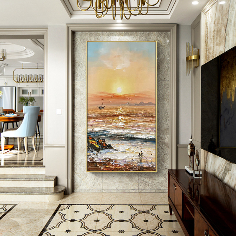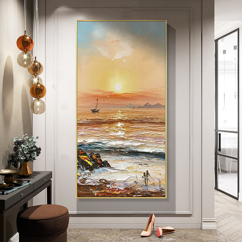 Pure hand-painted oil painting into the entrance corridor decorative painting vertical version of the light luxury modern simple hanging painting booming large