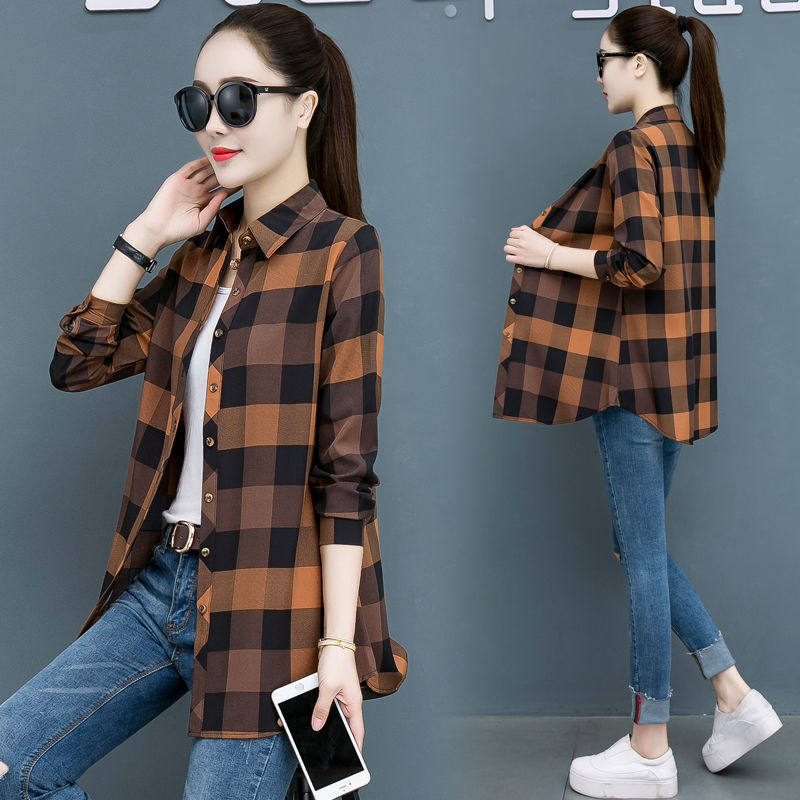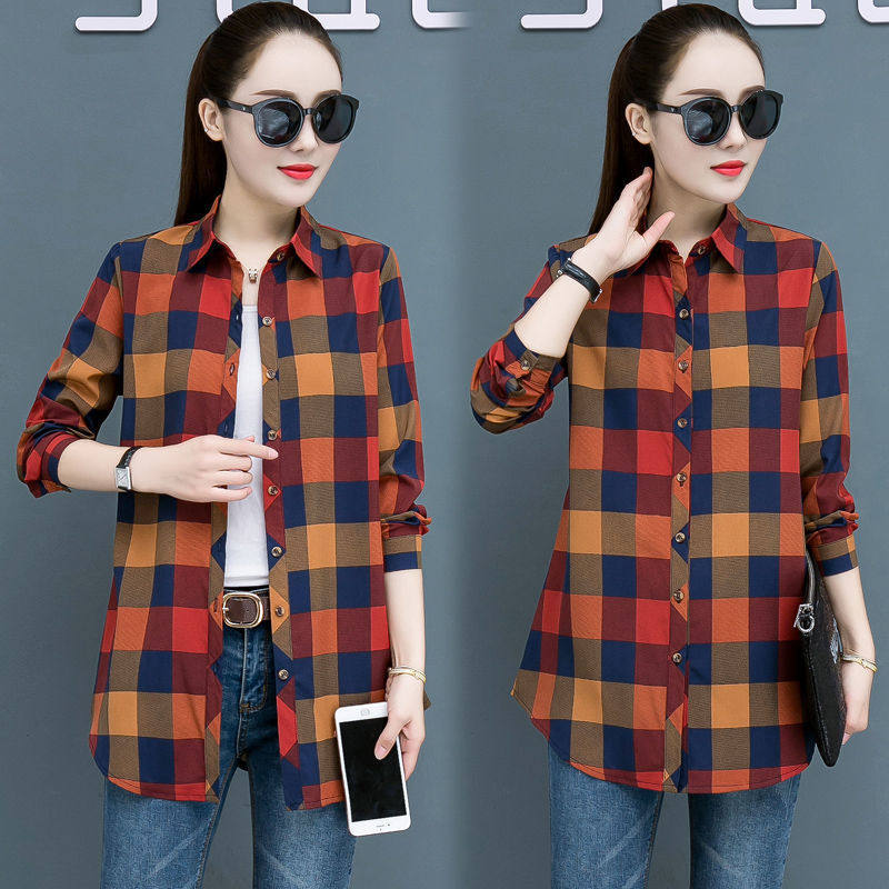 Mid-length plaid shirt women's 2022 autumn new long-sleeved top women's Korean version of retro all-match large size clothes trend
