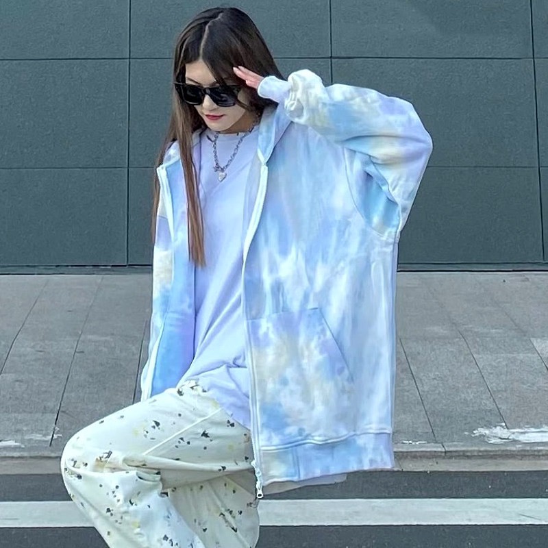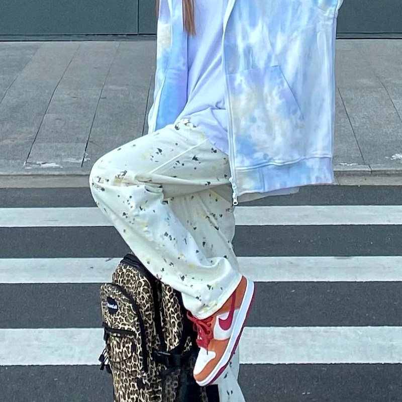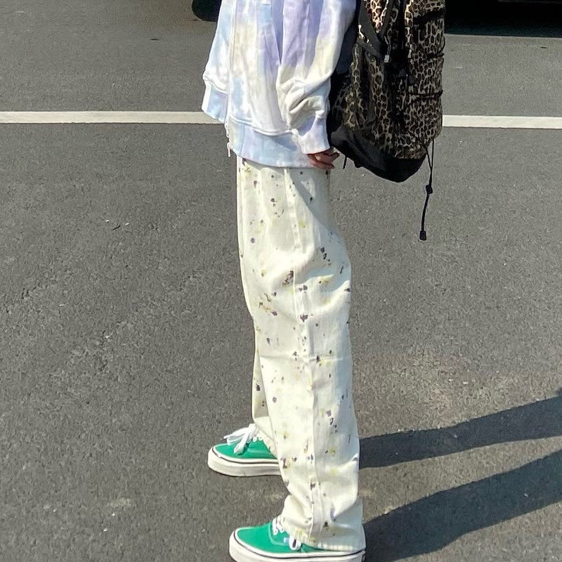 2022 spring tide brand color graffiti dye casual all-match white wide-leg pants loose high waist straight jeans