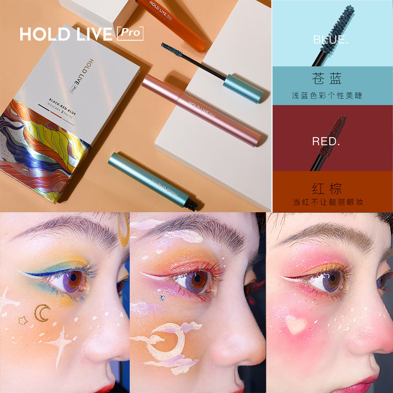 HOLD LIVE Eye Color Bloom Mascara Three Sets Red Brown Blue Carbon Black Color Combination Slim Waterproof