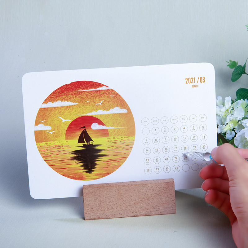Table calendar Customized 2022 Corporate photo Desktop Small swing piece minimalist calendar card lunar calendar Events Gift Souvenir made to set up a personal diy wooden table Calendar Booking Logo