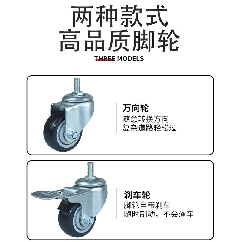 3-inch white nylon universal 3-inch white nylon brake 3-inch red polyurethane universal 3-inch red polyurethane brake 3-inch black polyurethane universal 3-inch black polyurethane brake 3-inch rubber universal 3