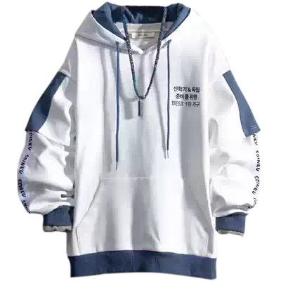 Japanese Tide Brand Youth Students Spring and Summer Hooded Couple Thick T-shirt Men Korean Top Loose Fake Two Jacket