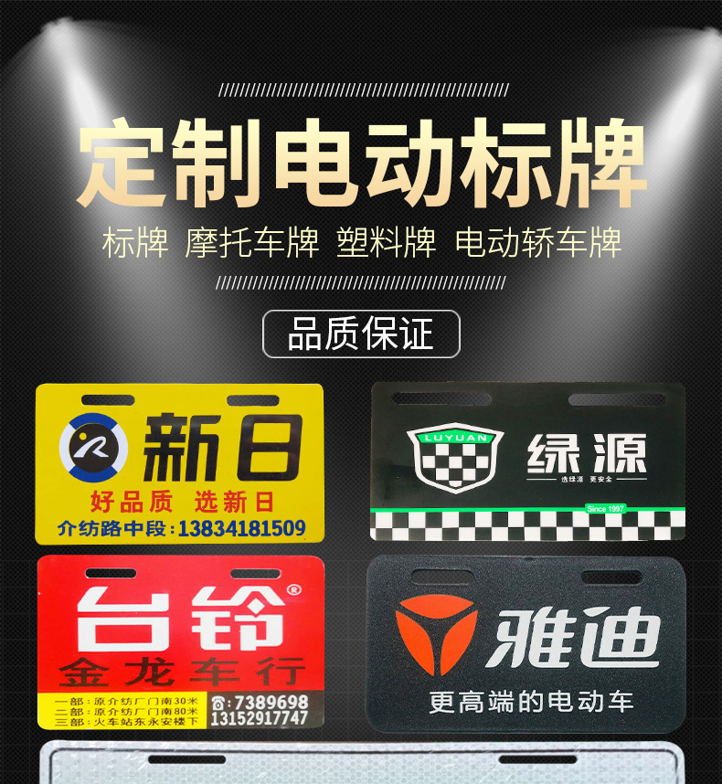 Custom Yadi Emma Green Source Taiwan bell personality sign rear plate Motoelectric car rear plate custom electric car plate