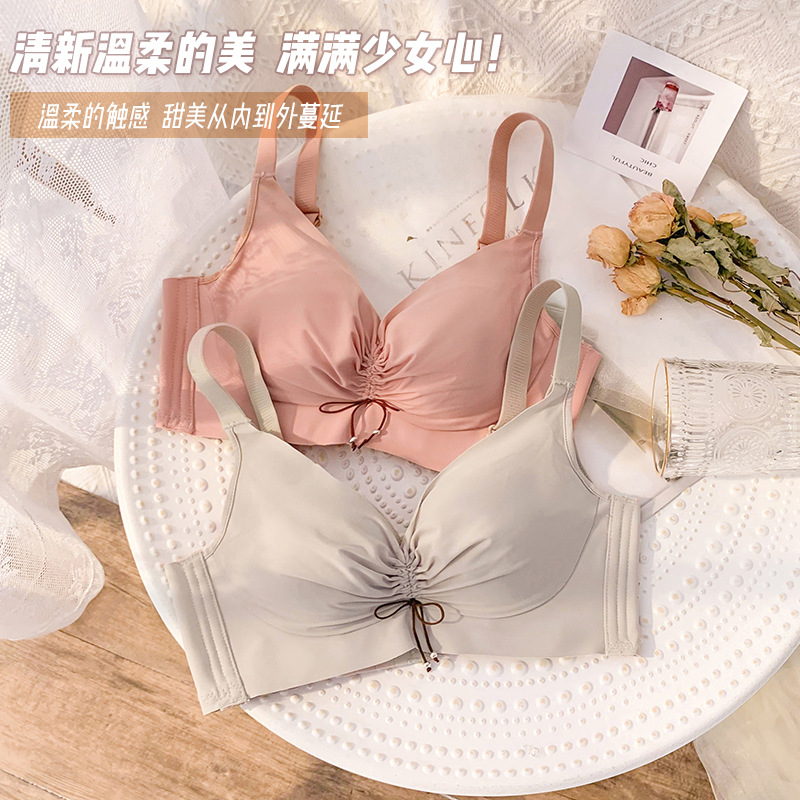 Underwear femalless steel ring adjustment type collection of breast-free breast large chest display small pull rope wrapping chest girl's day department No-mark underwear suit