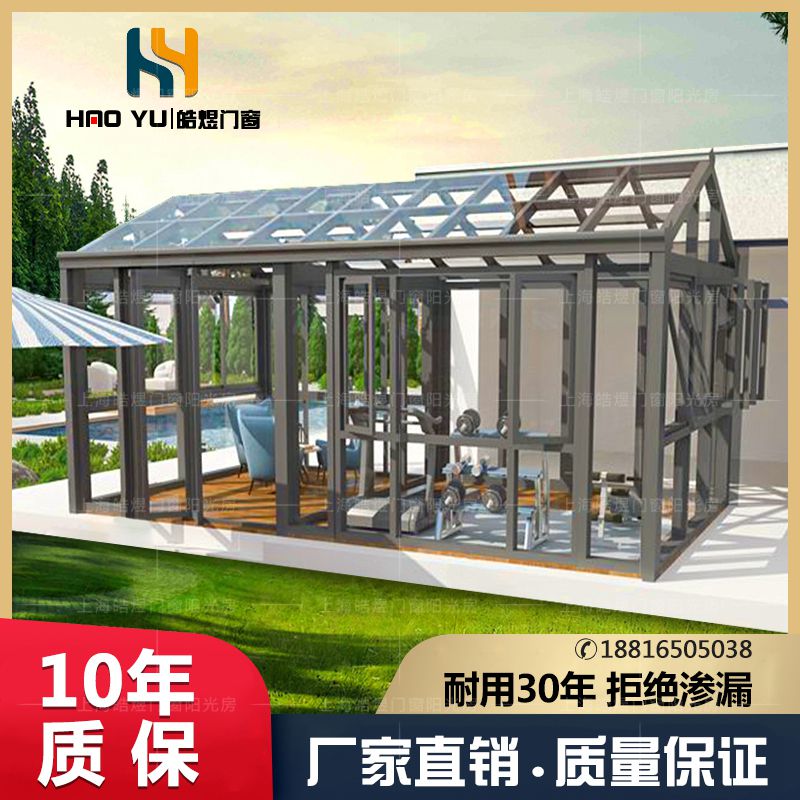 Shanghai European-style greenhouse terrace villa sealed balcony aluminum alloy broken bridge aluminum doors and windows tempered glass patio customization