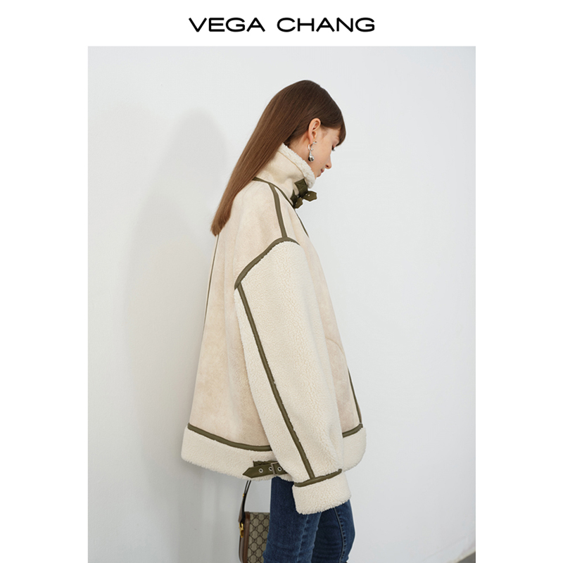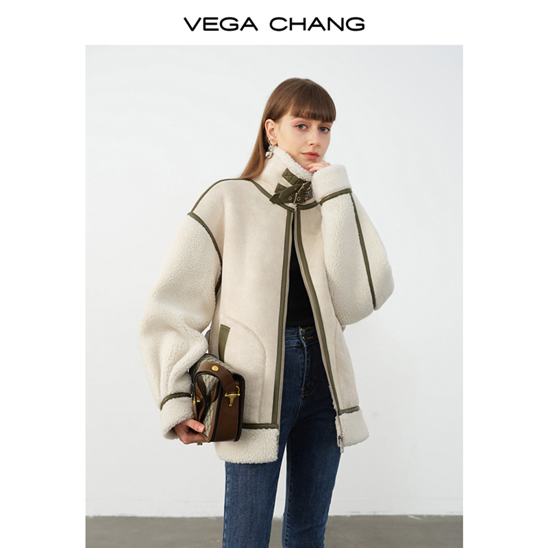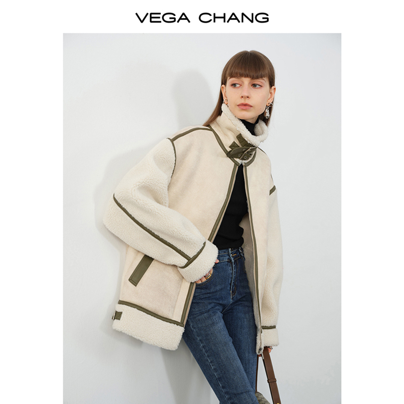 VEGA CHANG fur integrated coat women's winter new Korean version casual granule coat coat ins tide