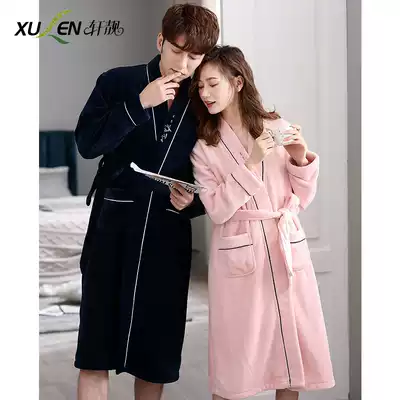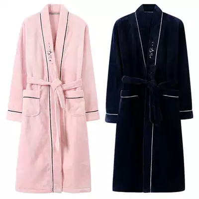 Nightgown women autumn and winter coral velvet padded velvet long flannel large size men winter bathrobe couple pajamas