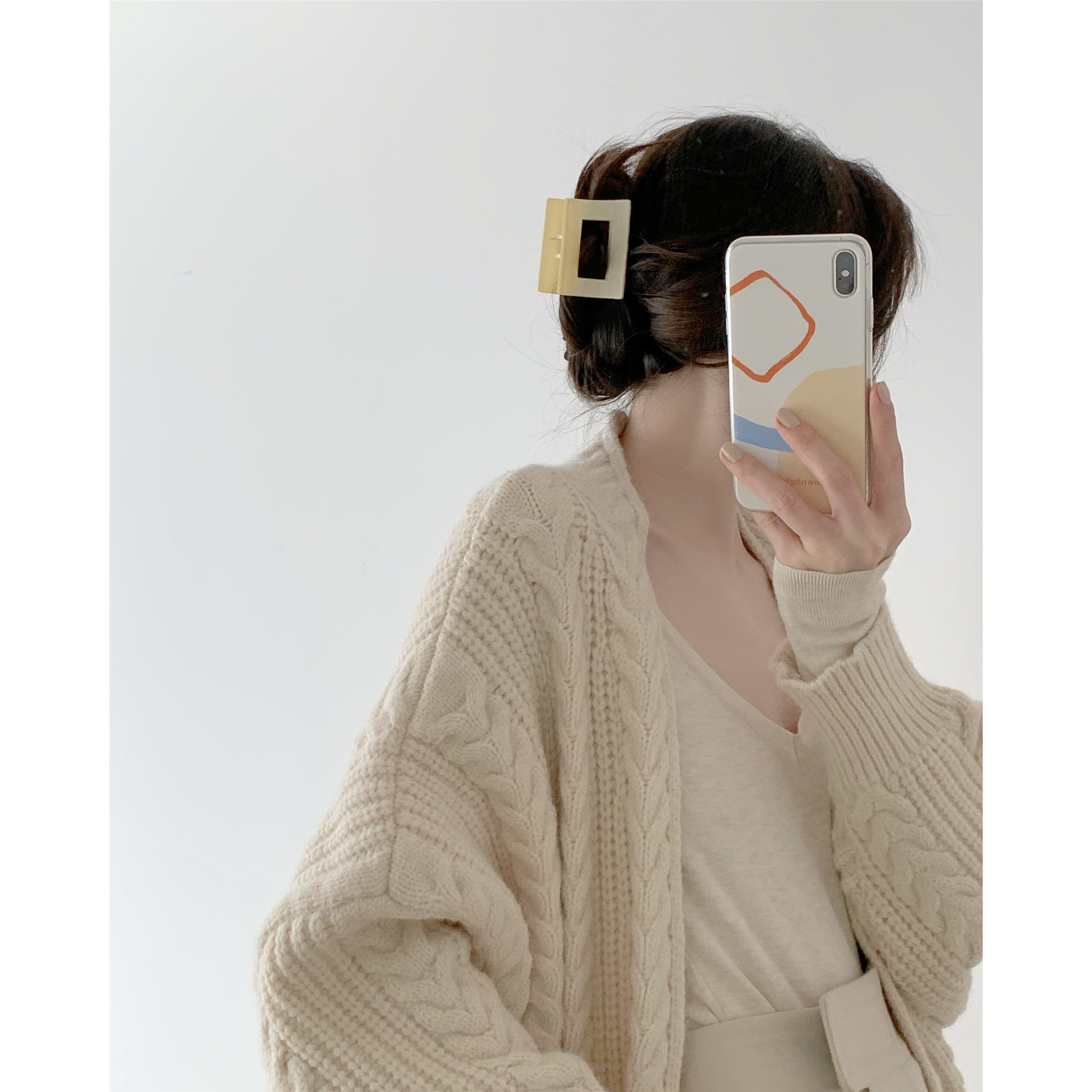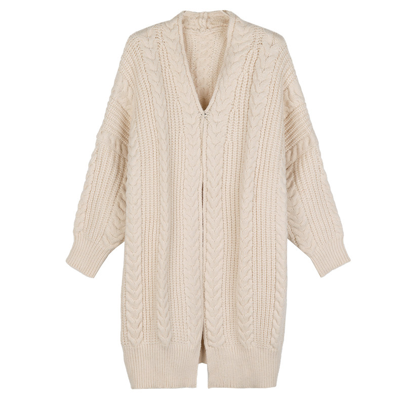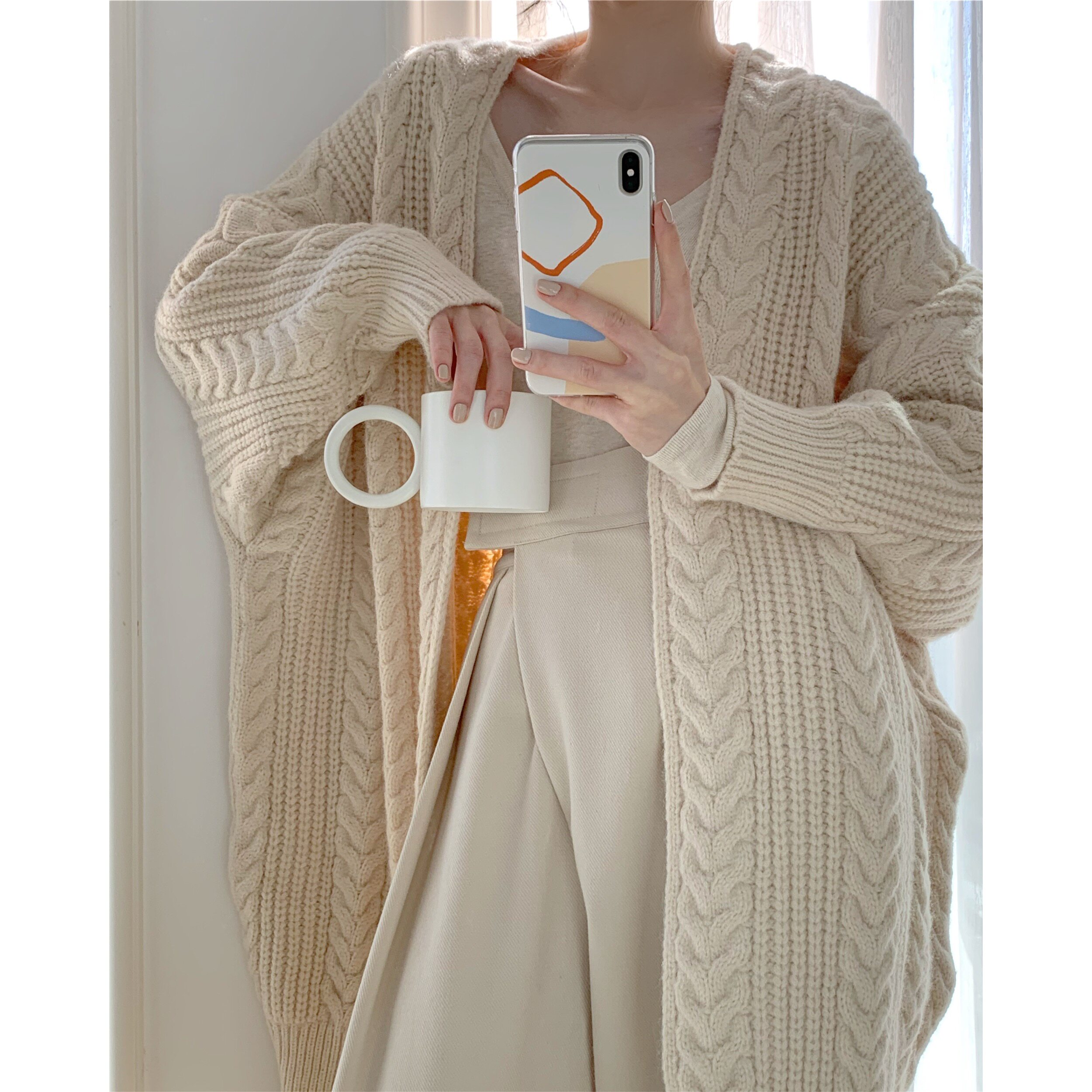 ICTS Paris Old Dream Ivory White Warm Polo Style Retro Great Hemp Flower Rough Knit Long Cardiovert Sweater Coat