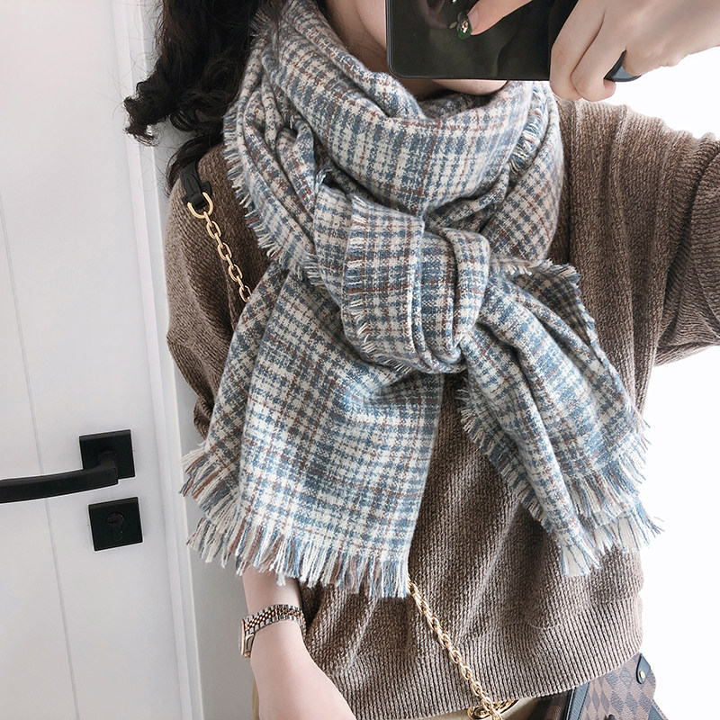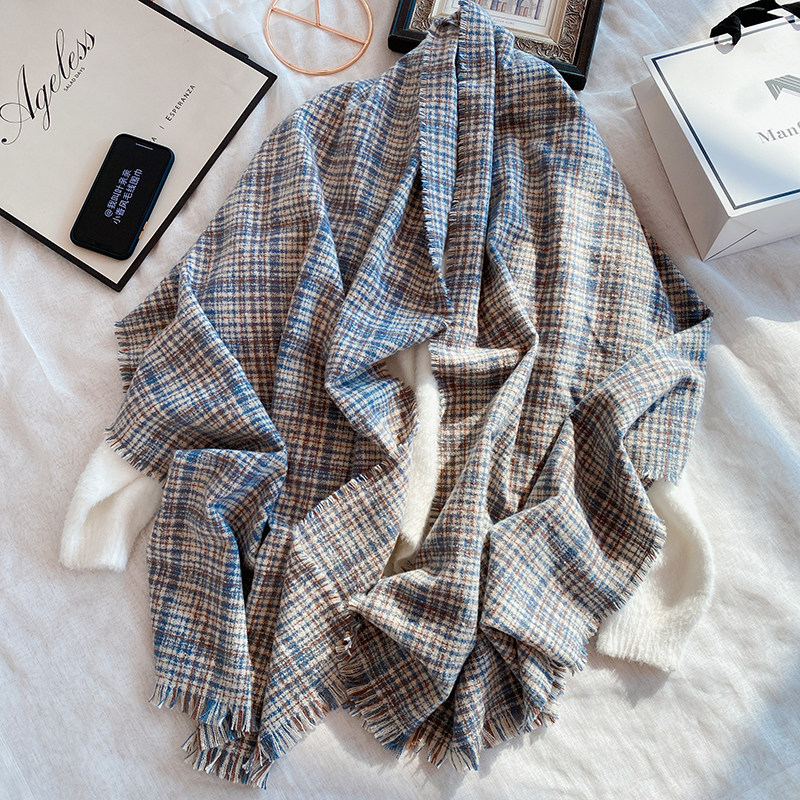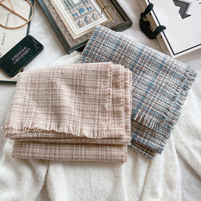 Scarf women's winter small fragrance style wild braided gold thread fine plaid shawl spring and autumn warm long thick scarf autumn and winter