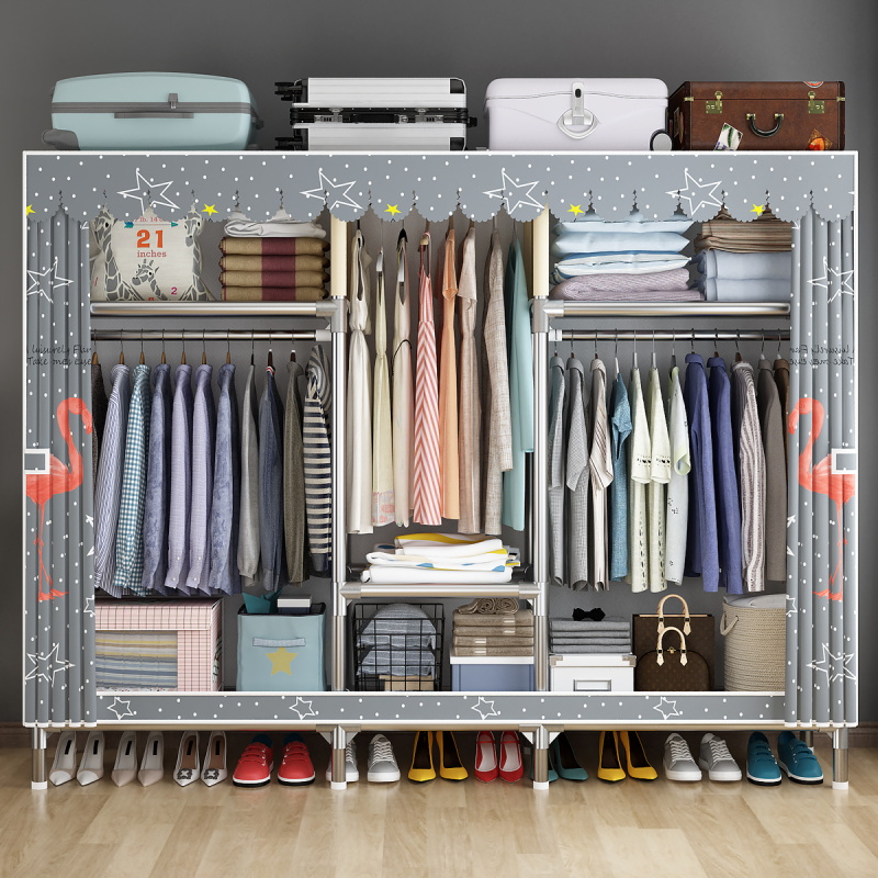 Simple cloth wardrobe steel pipe thickened alloy steel joint full steel frame Oxford cloth rental house bedroom home model